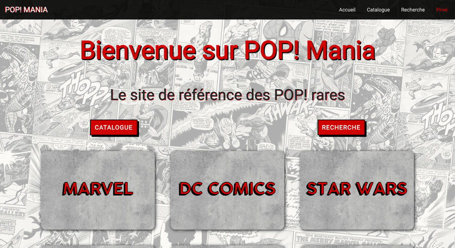 Site vitrine responsive de Funko Pop de collection. Il contient un espace administration sécurisé pour modifier la base de données en MySQL.